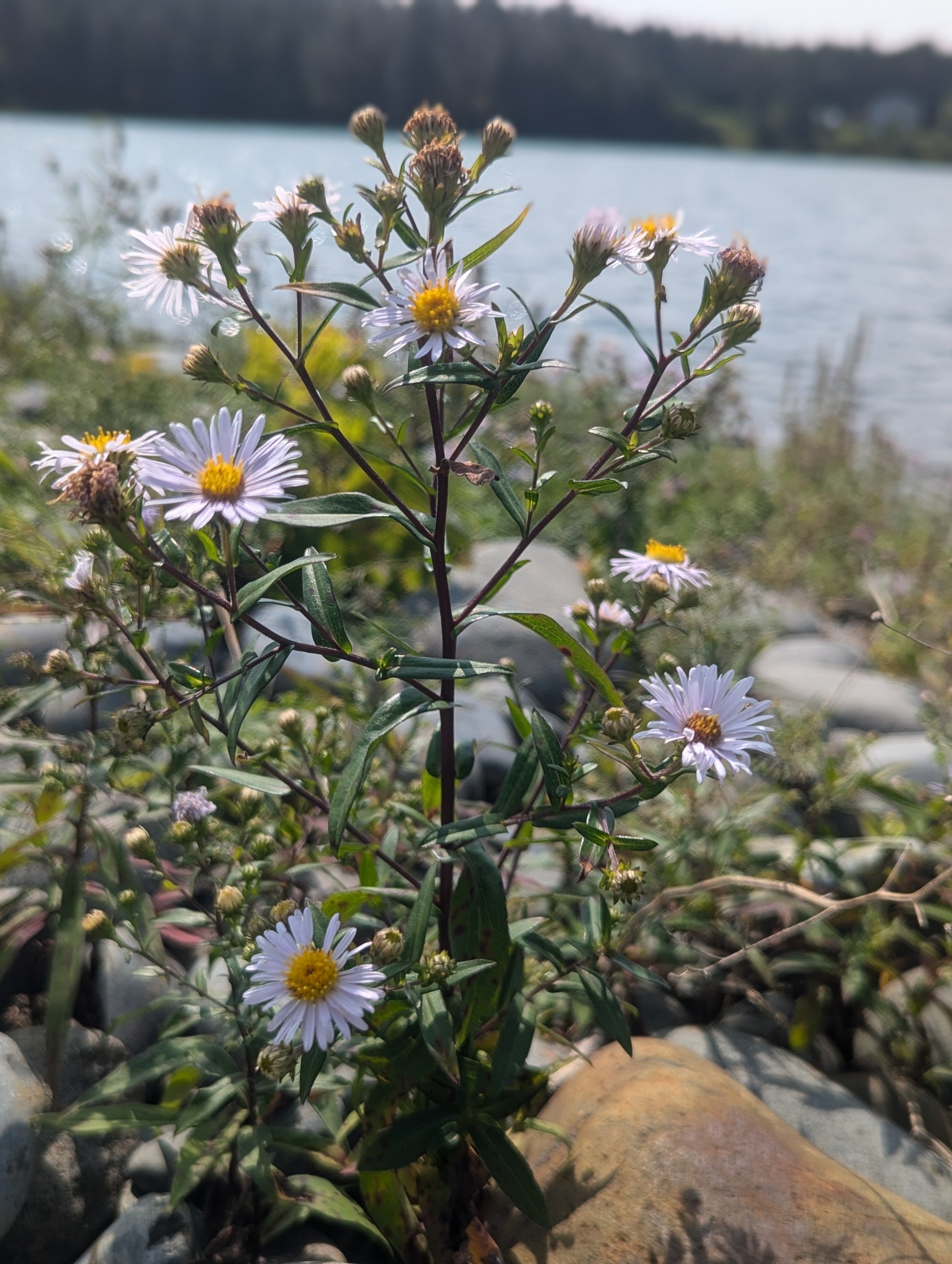 These native asters can grow pretty tall, with purple stems that, ironically, are not always purple! Clusters of flowers grow all above. Welcomes butterflies well.